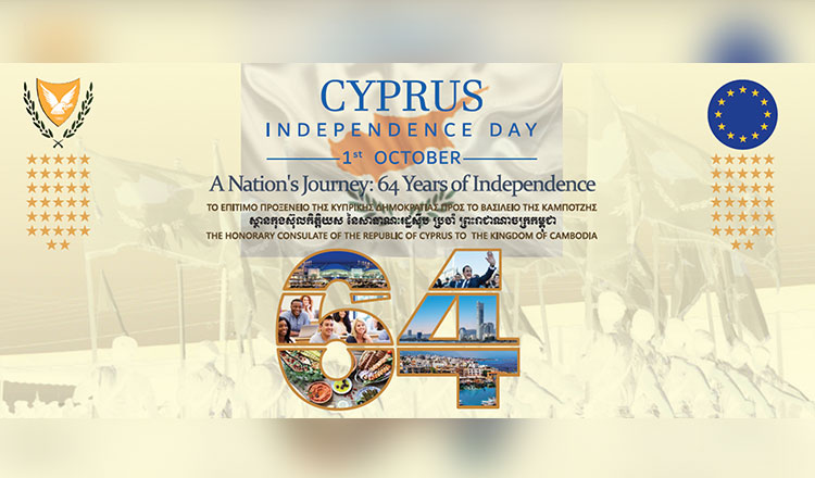On the auspicious occasion of Cyprus’s 64th Independence Day, I extend my warmest greetings to the government people of Cambodia and all the friends of Cyprus residing here. This significant milestone is not only a celebration of our rich history, diverse culture, and resilient spirit but also an opportunity to reflect on the strengthening ties between Cyprus and Cambodia.